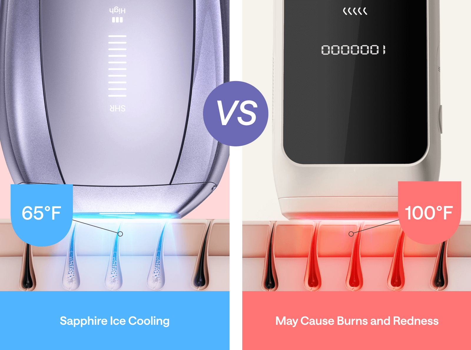 Maintaining a cool 65°F contact temperature, the Air 10 helps to prevent burns and irritation, ensuring nearly painless hair removal even in sensitive areas.